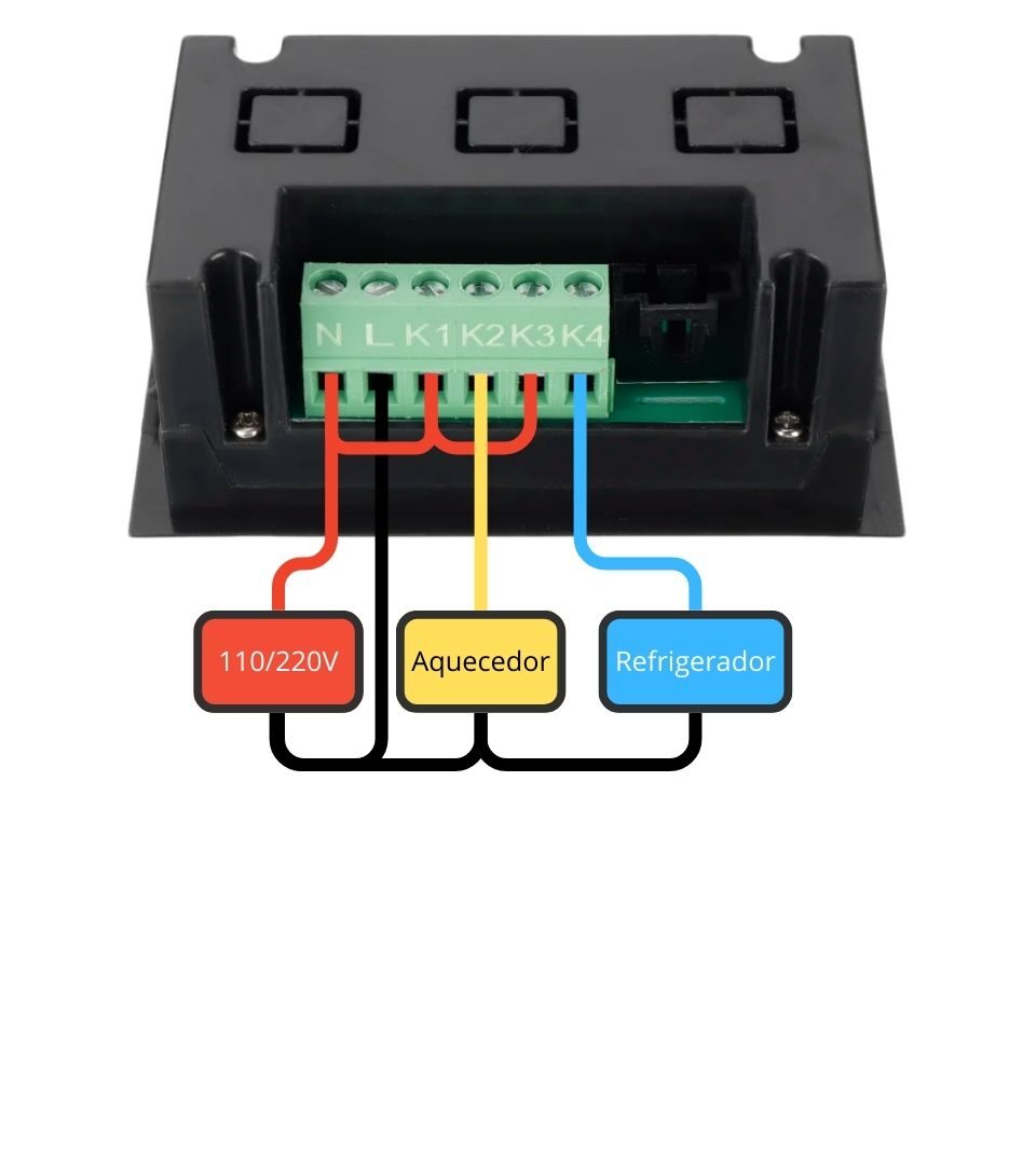 Para instalar e configurar o termostato W1211 é importante saber que ele possuí saída chaveada. Isso significa que a tensão da saída pode ser diferente da tensão de entrada (110/220VCA). Portanto esse modelo permite a conexão de dispositivos de diferentes níveis de tensão em sua saída. Exemplos são dispositivos conectados à fontes 5/12/24VCC ou 110/220VCA com no MÁXIMO 10A.