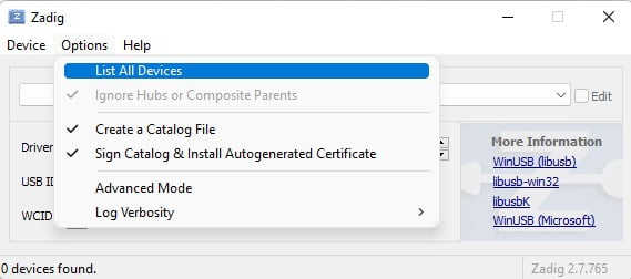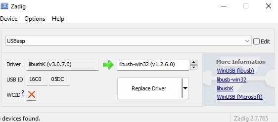 O primeiro passo para instalar os drivers para o programador USBasp é o download do software Zadig. Este é um programa que visa simplificar o download e ativação de drivers.