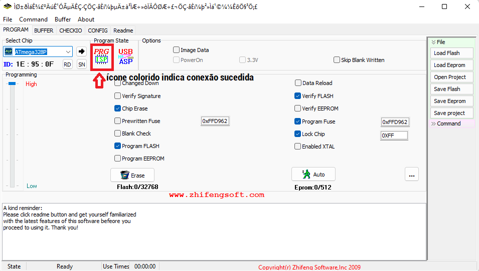 Para testar o programador USBasp, iremos usar o software Prog ISP 1.72. Há outros softwares que podem ser usados para a gravação de microcontroladores como AVRDUDESS, AVR PROGRAMMER, dentre outros. Usamos e recomendamos o Prog ISP 1.72.
